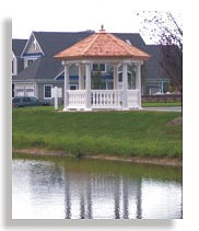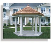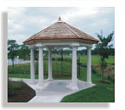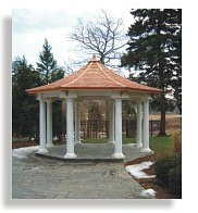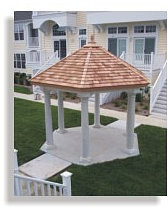 The Heritage Gazebo features the beauty, warmth and longevity of a Western Red Cedar roof and the low maintenance characteristic of composite materials below the roofline. The classical architectural detailing and the generous overhang of the roof combine to provide a unique pavilion that will complement various settings with elegance and style.